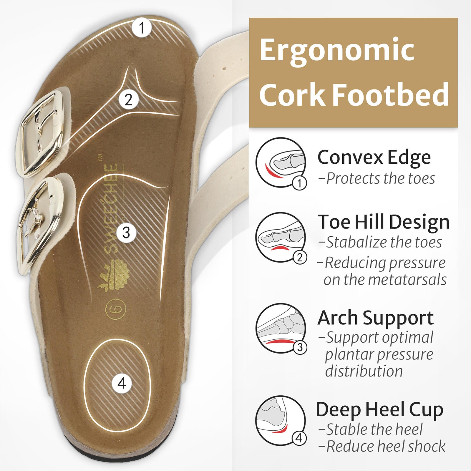 • Ergonomic cushioned Footbed: Sweechee redefines the women’s orthopedic sandal with a luxuriously soft yet supportive contoured footbed. Infused with extra memory foam padding, Sweechee's comfortable walking sandals ensuring each step is a cushioned delight.