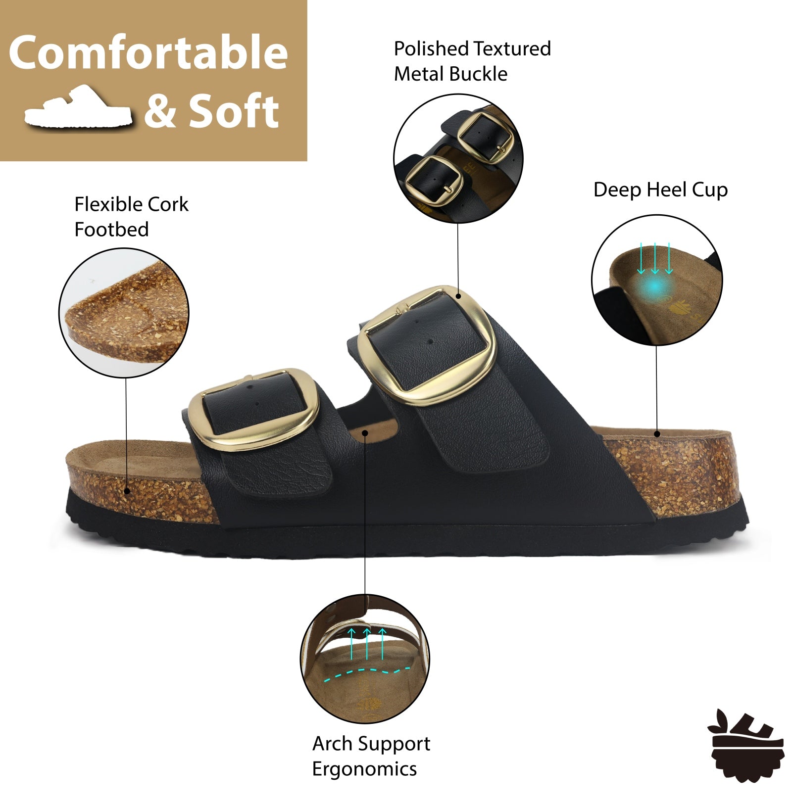 • Quality Assured Stable Strides: Crafted from top-quality, sweat-resistant vegan leather, our women's sandals are your trusty companions for those sweaty and unpredictable summer days. Our ultra non-slip outsole offers unmatched stability, ensuring safe and steady strolls, whether beachside or city-side. These lightweight sandals create an effortless 'cloud slide' walking experience, making them an exceptional choice for those seeking comfortable women's sandals.